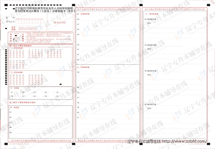 2015年辽宁专升本考试公共课计算机(C语言)考试答题卡