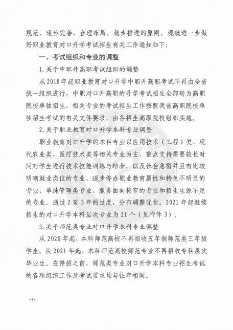 2.关于职业教育对口升学本科专业调整