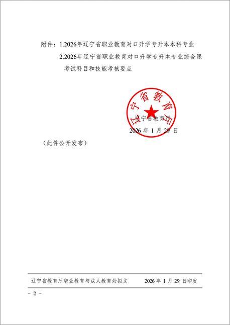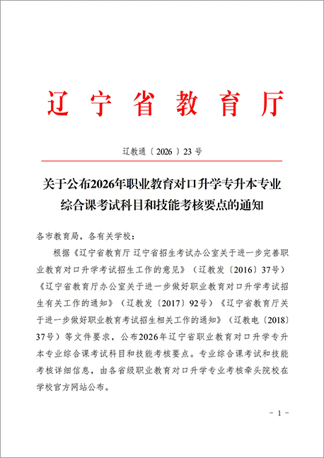 根据《辽宁省教育厅 辽宁省招生考试办公室关于进一步完善职业教育对口升学考试招生工作的意见》(辽教发〔2016〕37号)《辽宁省教育厅办公室关于进一步做好职业教育对口升学考试招生有关工作的通知》(辽教发〔2017〕92号)《辽宁省教育厅关于进一步做好职业教育考试招生相关工作的通知》(辽教电〔2018〕37号)等文件要求,公布2026年辽宁省职业教育对口升学专升本专业综合课考试科目和技能考核要点。专业综合课考试和技能考核详细信息,由各省级职业教育对口升学专业考核牵头院校在学校官方网站公布。